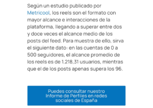 Un ejemplo de este concepto es el informe sobre el uso de redes sociales en España que publicamos cada año. Si quieres averiguar cómo funciona, solo tienes que pinchar aquí y dejar tus datos.