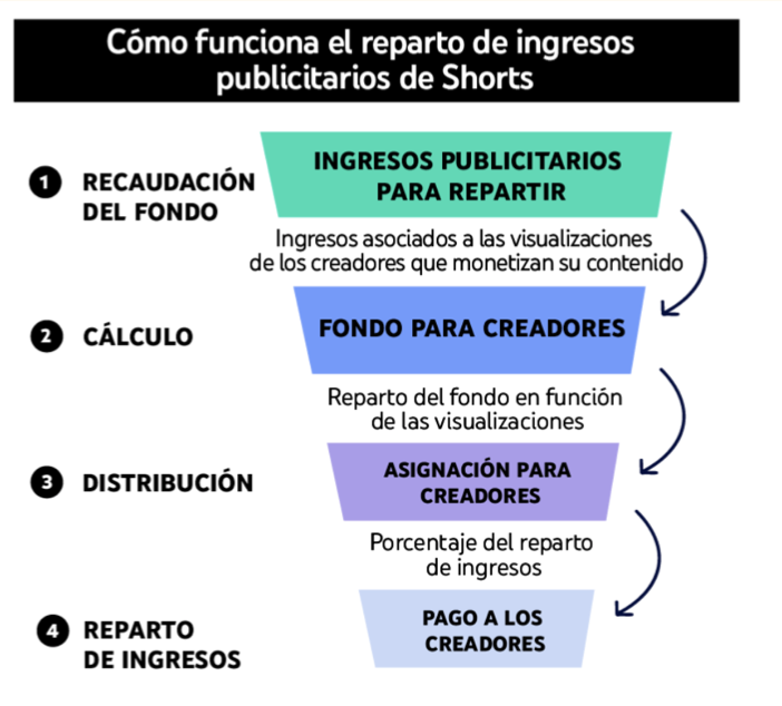 Los partners que moneticen su contenido pueden obtener ingresos con los anuncios que se muestran entre vídeos del feed de Shorts. Este nuevo modelo de reparto de ingresos ha sustituido al Fondo de YouTube Shorts.